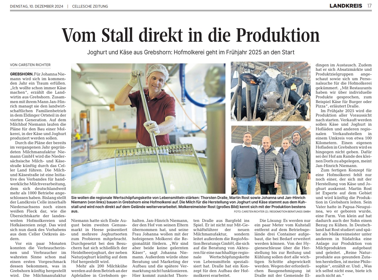 "Vom Stall direkt in die Produktion" - Cellesche Zeitung - 10.12.2024